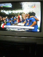 クローゼが同点ゴール決めた時は、枕ブンブン回して、跳びはねて大喜び・・・・♪♪